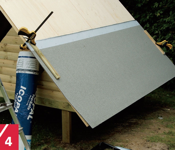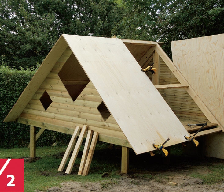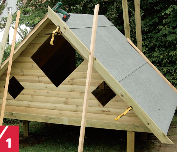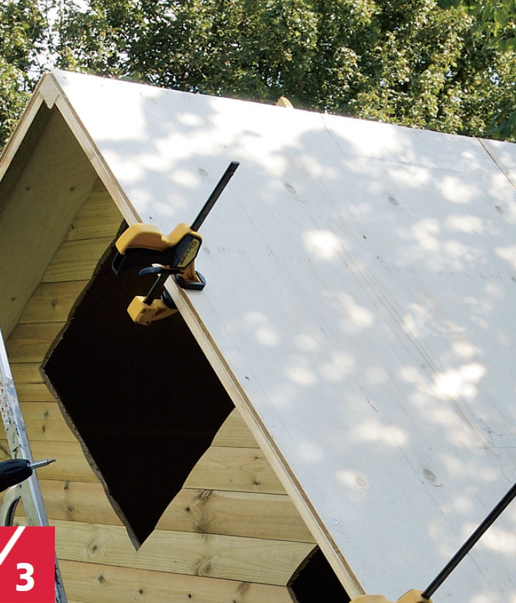 Nosta liukumäki paikalleen katolle ja kiinnitä sovitusta varten väliaikaisesti parilla liimapuristimella.