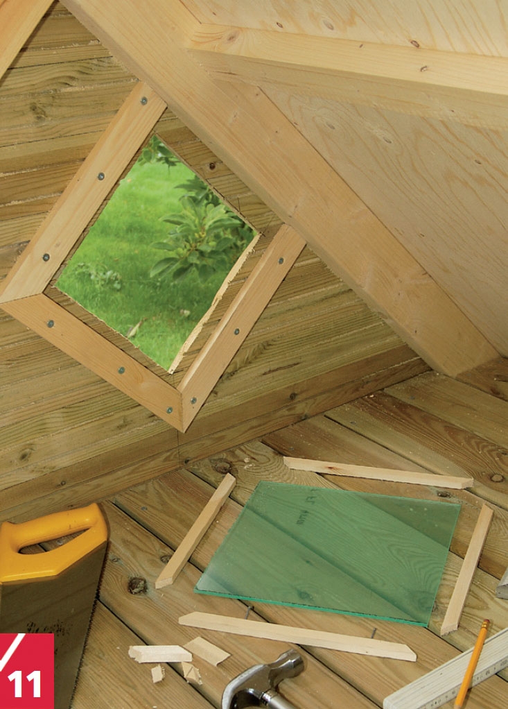 Pikkuikkunoiden ympärille kiinnitetään 30 mm yleisruuveilla tai nauloilla listat, jotka muodostavat huullokset laseja varten. Lasit tehdään kuitenkin muovista eli akryylimuovilevystä.