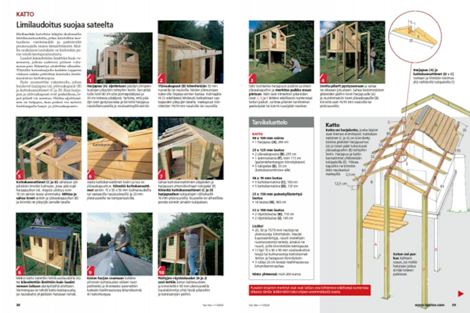 Lapset kiipeävät mielellään leikkimök-kiinsä puolapuita tai puunrunkoa pitkin. Mallileikkimökissämme on kuitenkin myös tavalliset portaat, joita äiti ja isä voivat käyttää tullessaan vierailulle me-hukannun ja leivonnaisten kanssa.