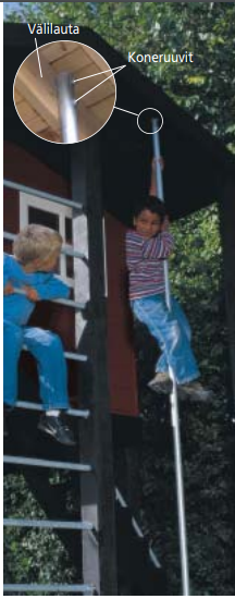 Joka paikasta täytyy päästä pois vauhdilla vihollisen hyökätessä. Tässä leikkimökissä nopein pakotie on vesijohtoputkesta tehty palomiehentanko.