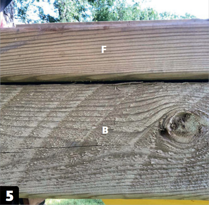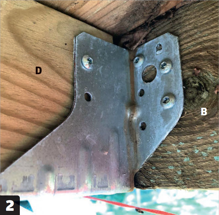 Asenna runkolankut (D) palkkikenkiin, jotka ruuvataan kiinni pohjapalkkeihin (B). Pidä huoli, että lankkujen yläreuna tulee samalle tasolle palkkien kanssa.