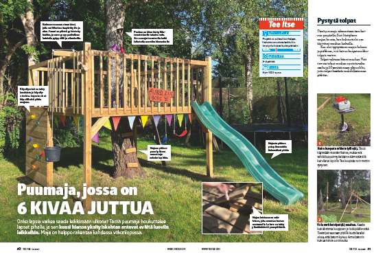Majaan rakennetaan lisäksi kiipeilyseinä ja nosturi, ja yhteen nurkkaan asennetaan liukumäki.