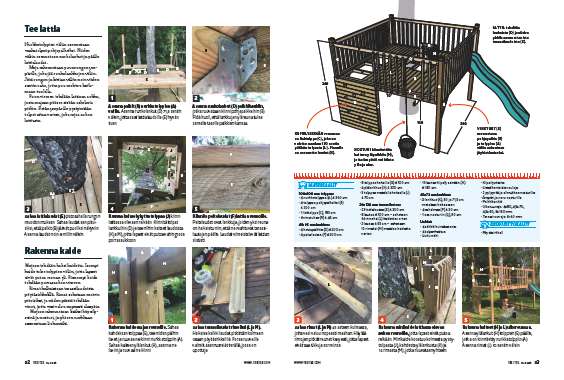 Rakenna minikaide lattiassa olevan aukon reunoille, jotta lapset eivät putoa reikään. Minikaide koostuu kolmesta pystytolpasta (J), kahdesta ylälankusta (K) ja 12 rimasta (M), jotka ruuvataan yhteen.