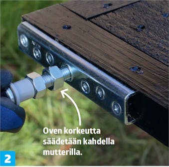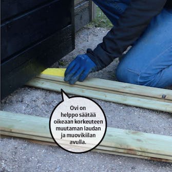 Oven runko tehdään vedenkestävästä muottivanerista, johon kiinnitetään listat ja ulkovuorilaudat. Se onnistuu nopeasti ja varmistaa, että rakenteesta tulee tukeva.