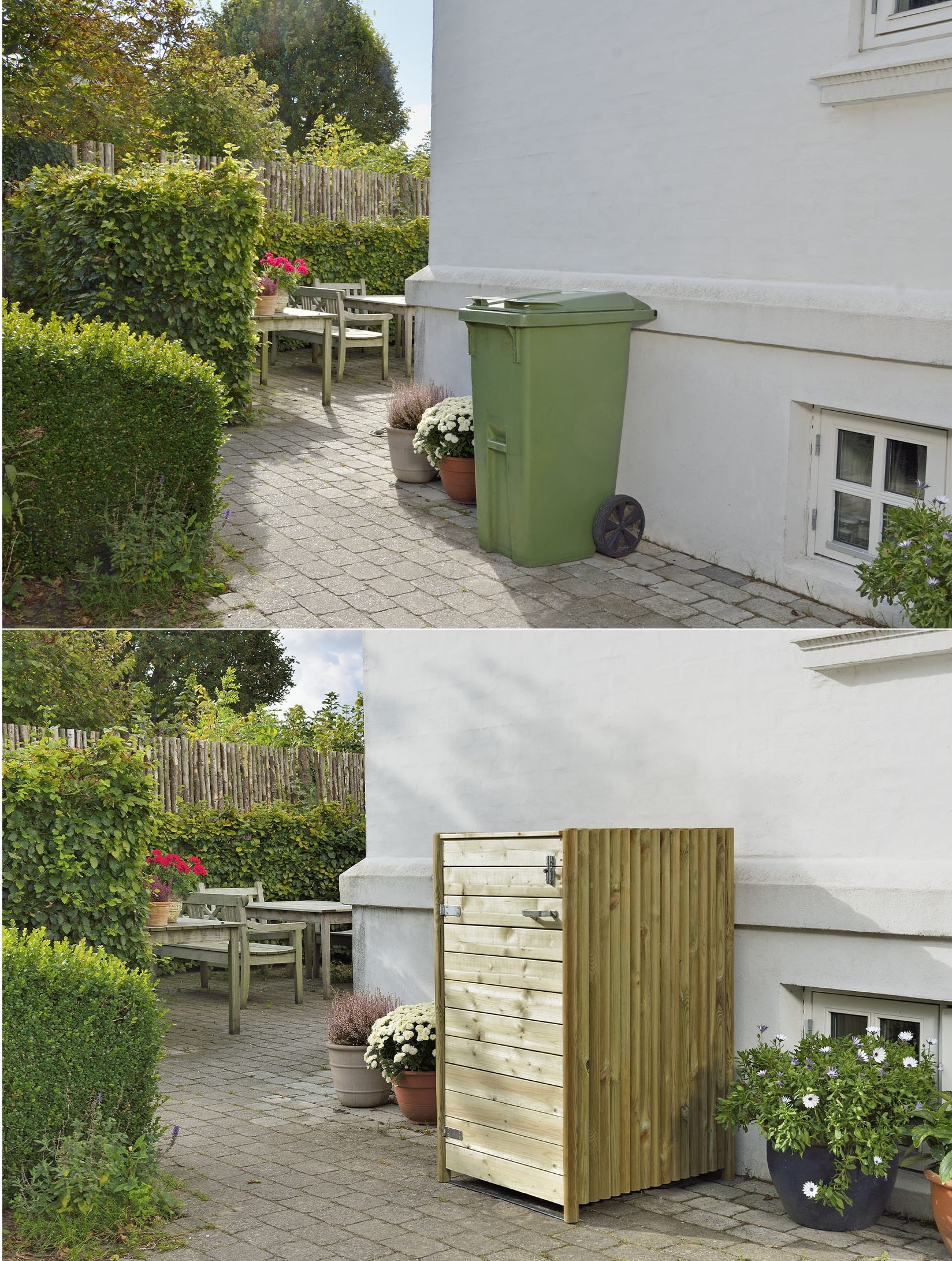 Kannen alle kiinnitetään silmukka, johon voidaan kiinnittää karabiinihaalla varustettu ketju. Sen avulla jäteastian kansi on helppo avata. Nyt riittää, että jäteastiaa täytettäessä nostaa kotelon kannen. Kätevää.