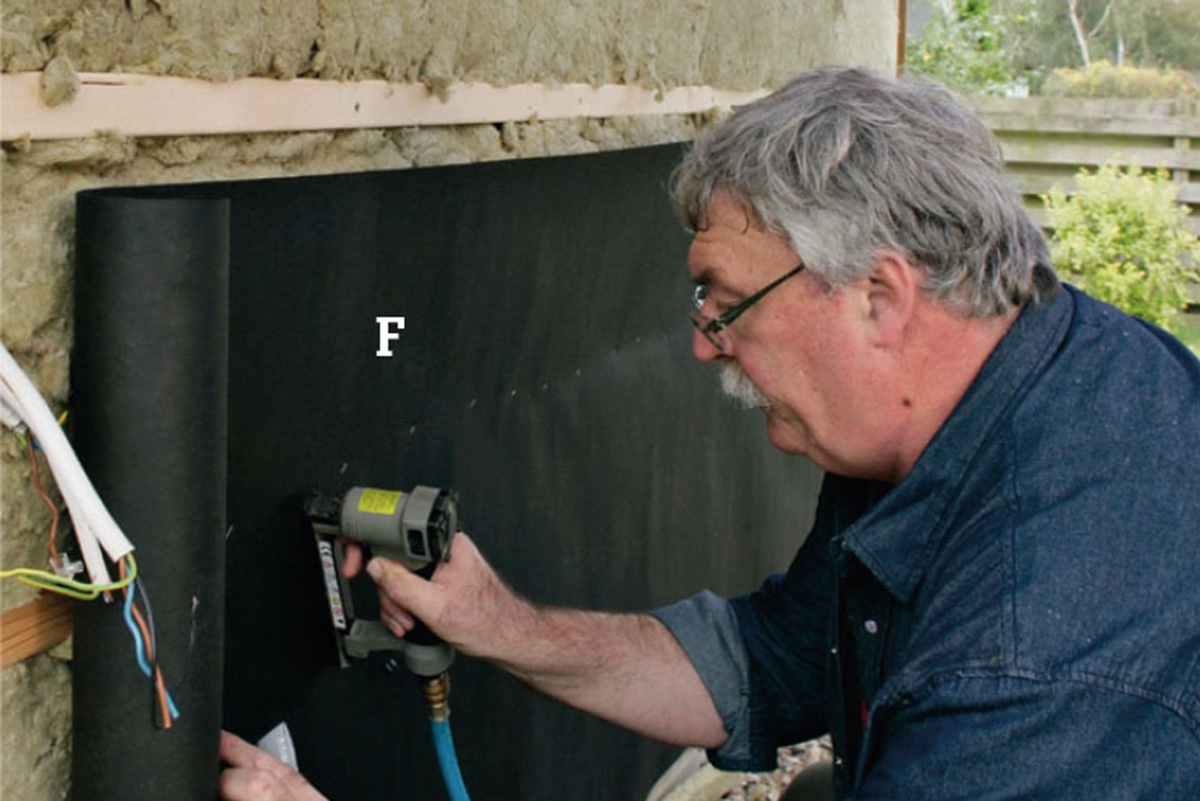 Kiinnitä uusi tuulensuojapaperi vankoilla sinkilöillä. Aloita alhaalta, jotta mahdolliset sadepisarat eivät pääse paperin alle. Limitä vaakakaistaleet vähintään 10 cm:n leveydeltä.