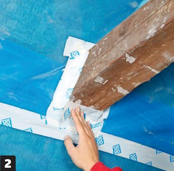 Teippaa kaikki saumat huolellisesti vahvalla höyrynsulkuteipillä (J). Tiivistä teipillä myös kaikki läpiviennit ja reunat.