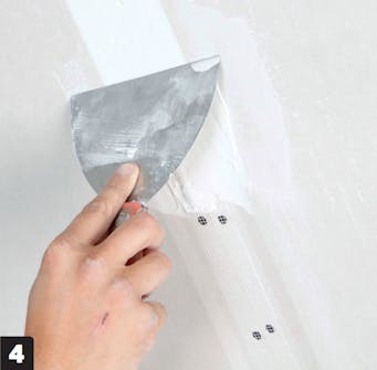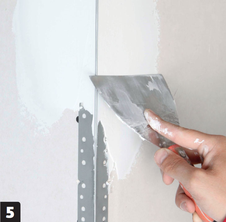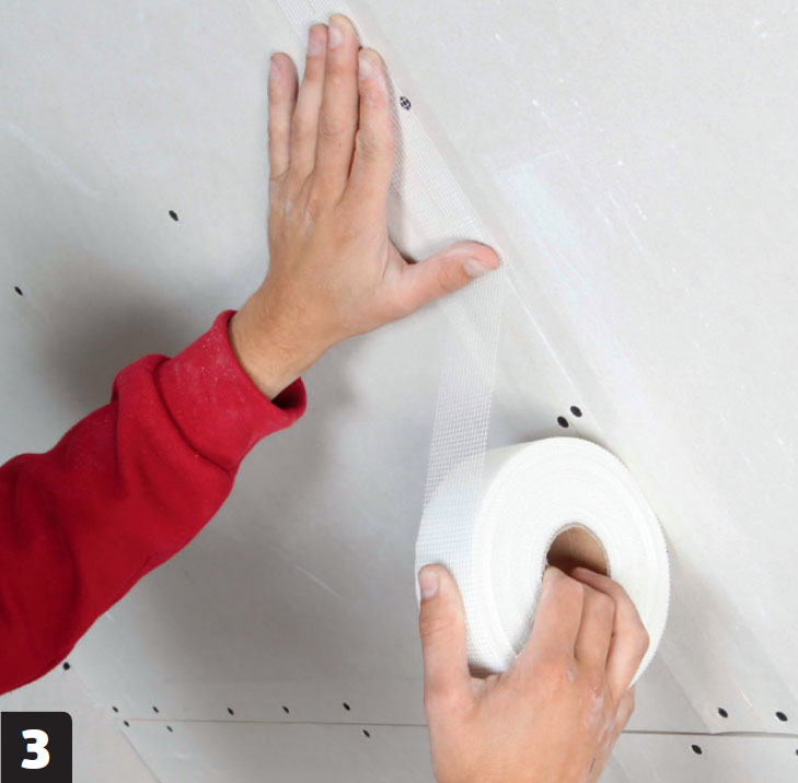 Täytä saumat huolellisesti kipsitasoitteella monessa kerroksessa. Aluksi on tarkoitus peittää vahvikenauha, sen jälkeen reunaohenteet.