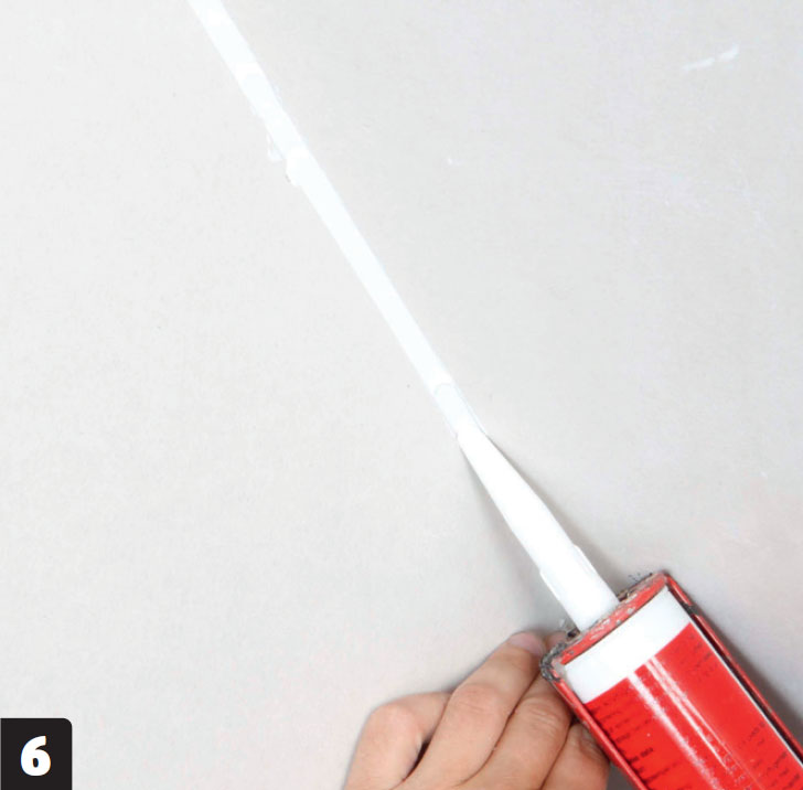 Viistä kipsilevyjen suorat reunat ennen tasoitteen levittämistä mattoveitsellä. Pidä terää vinossa ja viistä levystä suikale noin viiden millin päästä reunasta.