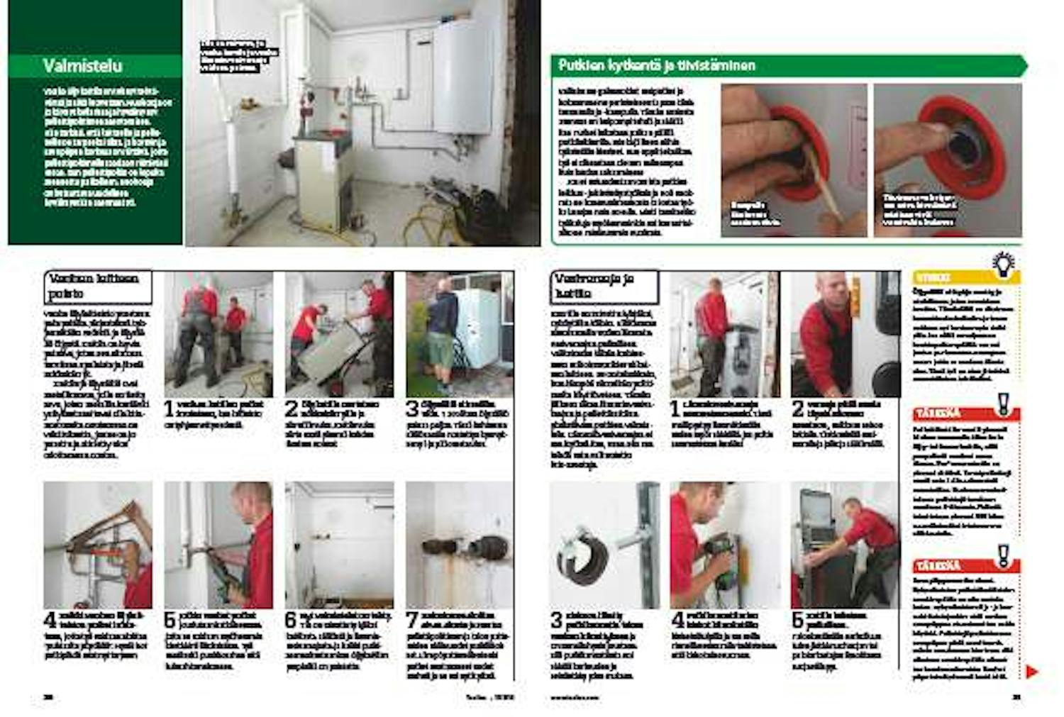 Asennus alkaa. Monet putket kannattaa yhdistää jo etukäteen, ennen kuin ne liittää lopulliseen asennukseen.