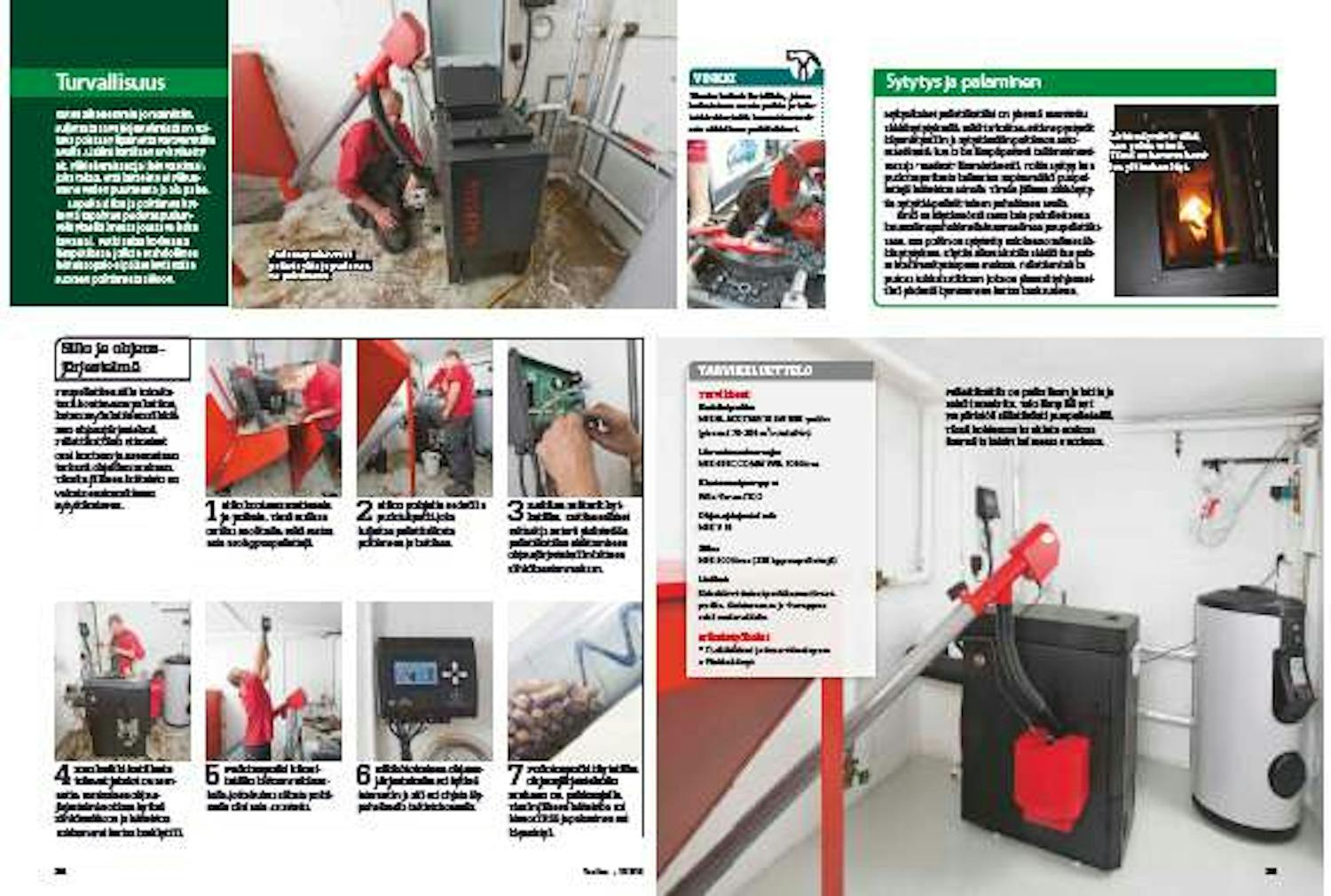 Puupellettien siilo toimitetaan koottavana pakettina, kuten myös laitteen sähköinen ohjaus järjestelmä. Pellettikattilan viimeiset osat kootaan ja asennetaan tarkasti ohjeiden mukaan. Tämän jälkeen laitteisto on valmis ensimmäiseen sytyttämiseen.