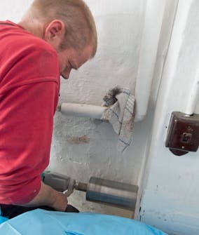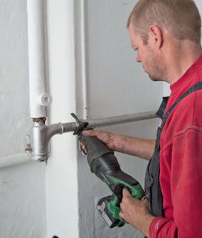 Jotkin vanhat putket joudutaan katkaisemaan, jotta ne voidaan myöhemmin kiertää irti liitoksistaan. Työ vaatii sekä puukkosahan että kulmahiomakoneen.