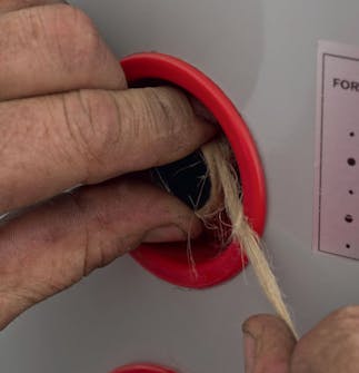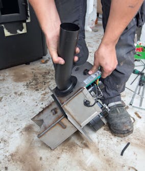 Hormiin tehdään uusi reikä timanttireikäsahalla, jotta vedonsäädin voidaan asentaa. Se takaa tasaisen palamisen myös silloin, kun ulkona myrskyää.