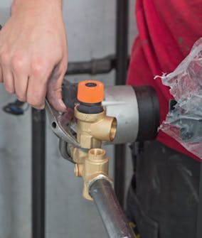 Asennamme myös varo venttiilin. Koska laitteisto on suljettu järjestelmä, se voi vikatilanteissa joutua kovaan paineeseen. Venttiili sulkee vedentulon, mikäli näin tapahtuisi.