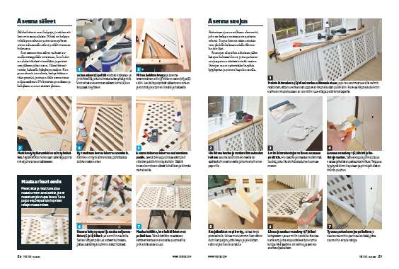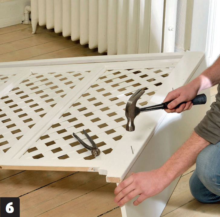 Sälekaihtimet ovat halpoja, ja niiden säleet ovat samanlaisia. Niistä on helppo tehdä punoskuvio patterinsuojuksen eteen sahaamalla säleet poikki viistossa kulmassa.