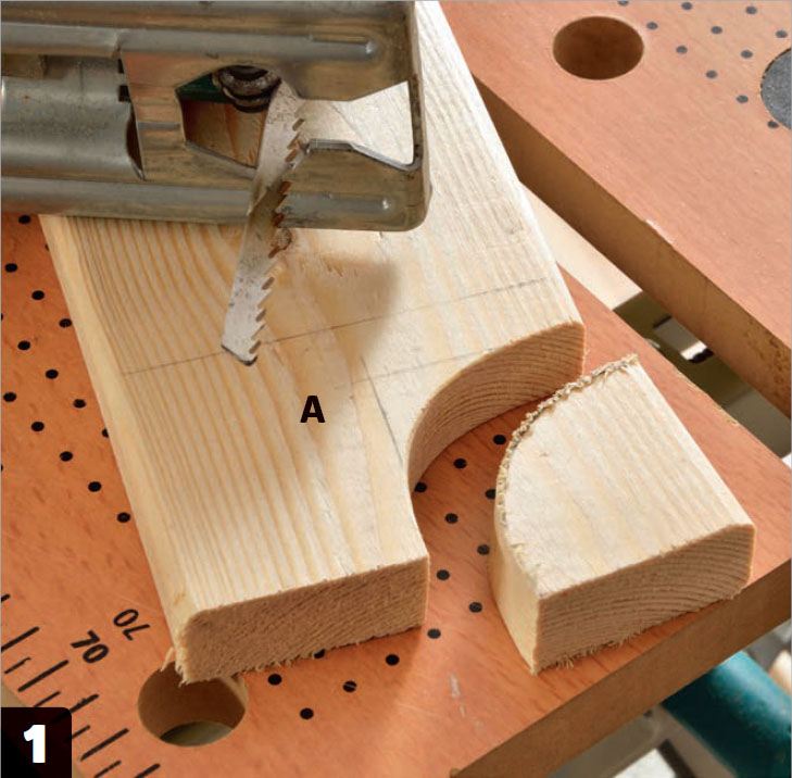 Sahaa kehysrimat (A). Alas sahattavat pyöristykset saavat suojuksen näyttämään kevyemmältä. Piirrä noin 10 sentin kokoiset kaaret pyöreän esineen avulla ja sahaa osat irti pistosahalla.