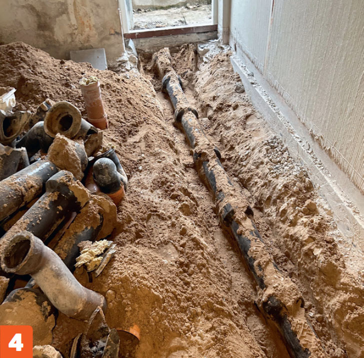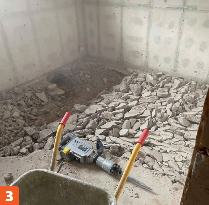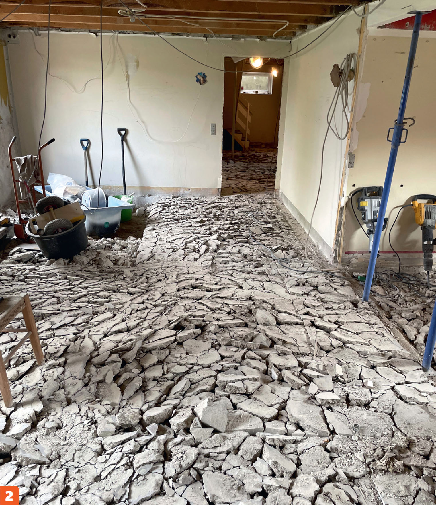 Tämä talo rakennettiin 1960-luvulla, kun energia oli halpaa eikä eristeisiin kiinnitetty kovin paljon huomiota. Betonin alta paljastui pelkkää hiekkaa.