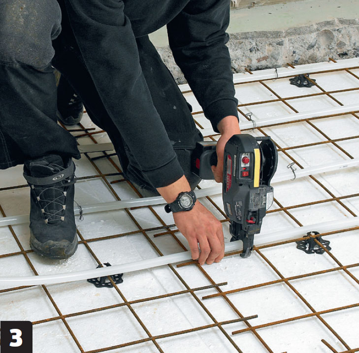 Nopea sitoja. Voit vuokrata sidontakoneen, jos aiot asentaa lattialämmityksen isolle alueelle. Kone nopeuttaa ja helpottaa työtä oleellisesti.