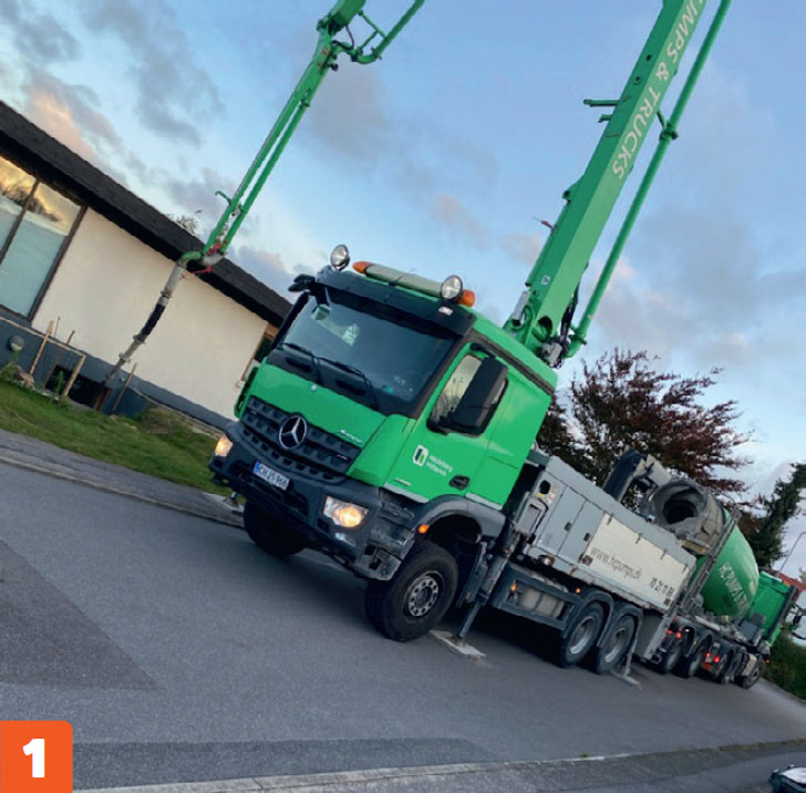 - Betonin voi tilata työmaalle valmiiksi sekoitettuna ja pumppuautolla tuotuna. Sen letku yltää talon joka puolelle, joten et joudu hätäilemään kottikärryjen kanssa.