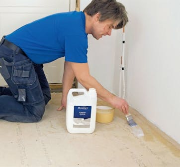 Poista pölynimurilla pölyt ja leiju-vat hiukkaset. Lattian pitää olla täy-sin puhdas ennen kuin primeri levitetään.
