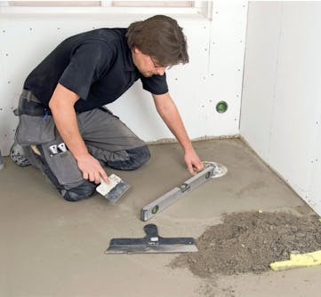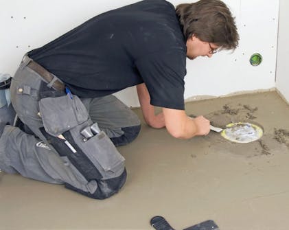 Tarkista, että kaato kaivolle on kunnossa. Käytä vesivaakaa. Jos lattiatasoite on liian kuivaa kaavittavaksi lastalla, käytä hiomakonetta.
