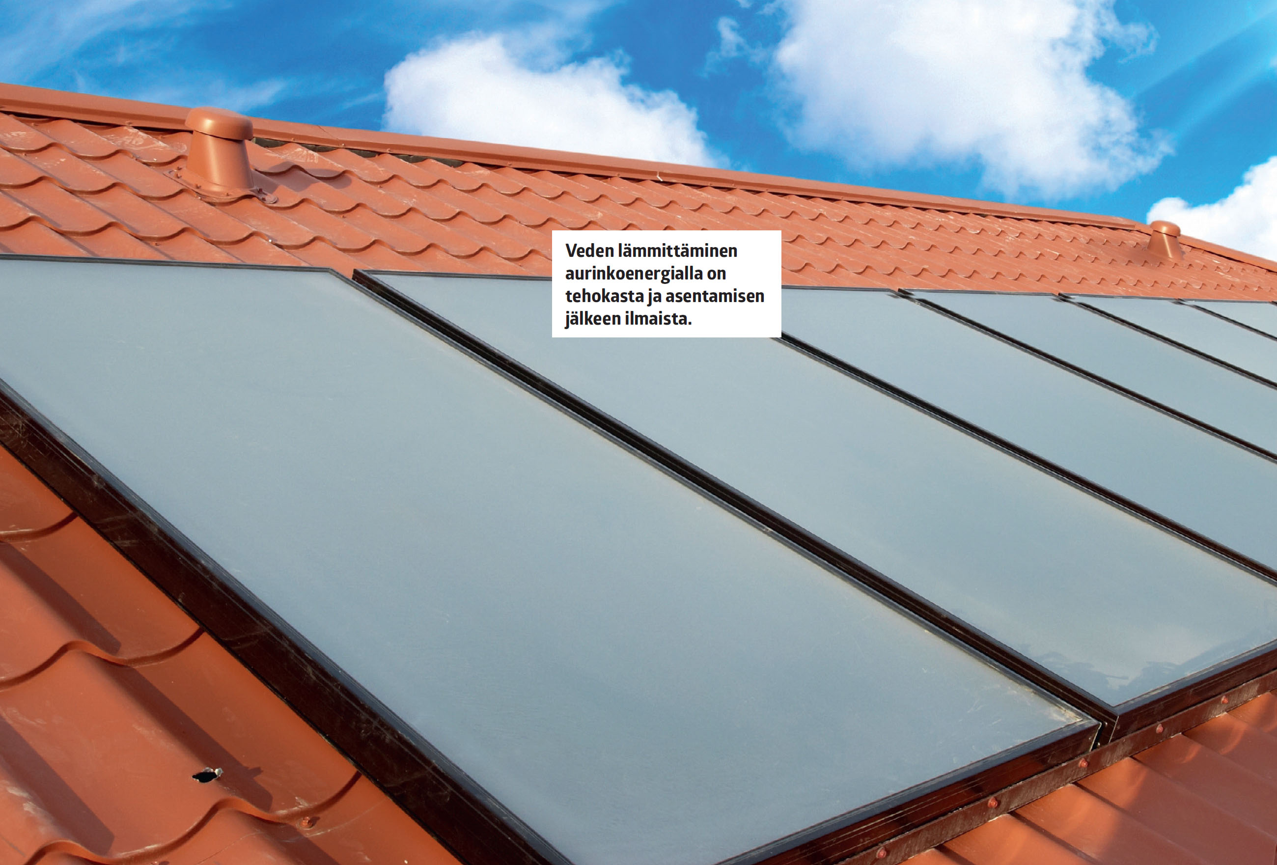 Aurinkolämpöjärjestelmä lämmittää vettä tehokkaasti hyvällä säällä, mutta siitä ei ole juuri hyötyä pimeänä vuodenaikana.
