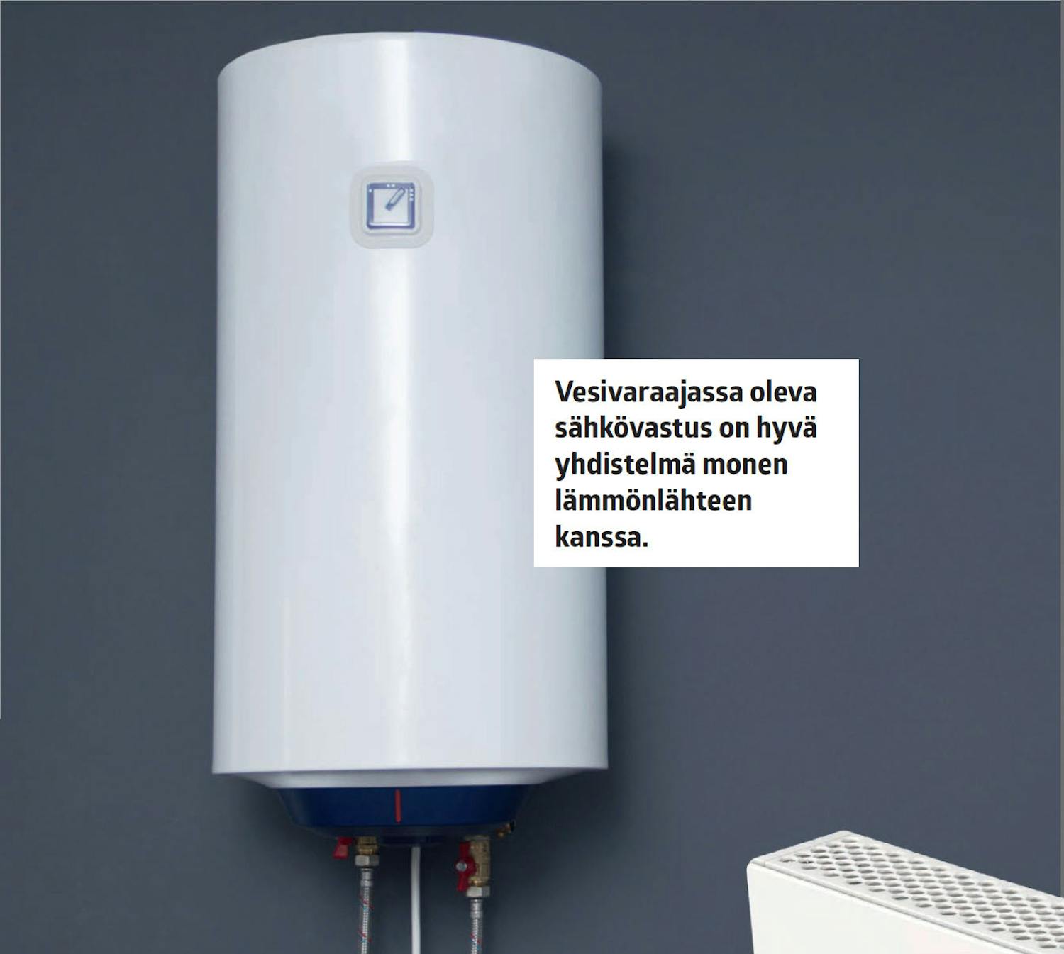 Onneksi käyttöveden lämmittämiseen on toinenkin tapa. Sähkövastus lämmittää veden suoralla sähköllä silloin, kun kattila ei ole päällä. Sähkövastus sopii yhteen myös maalämpöpumpun tai vesi-ilmalämpöpumpun kanssa, sillä sen ansiosta järjestelmää ei tarvitse mitoittaa liian isoksi. Sähkövastus menee päälle kovalla pakkasella ja silloin, kun lämmintä vettä kuluu tavallista enemmän.