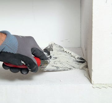 Suojaa kulmia tasoitteeseen painettavilla kiskoilla. Kevytbetonilevyjen kulmat ovat alttiita kolhuille, joten kiskot ovat hyvä hankinta. Sahaa ne päistään viistoon, niin liitoksista tulee siistimmän näköiset.