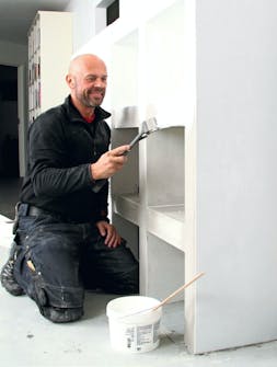 Tasoita hyllykkö loppuun, kun kis kot ovat paikoillaan. Vedä kaikkiin pin toihin hieno, tasainen kerros - myös hyllyihin. Anna tasoitteen kuivua päivän, ennen kuin välihiot sen hiomapaperilla (karkeus 60-80), puhdistat ja hiekkatasoitat toistamiseen.