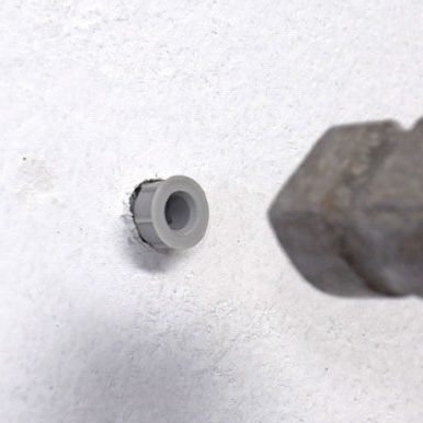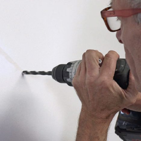 Asenna reikään 8 millin tulppa ja lyö se varovasti reikään vasaralla. Tässä seinässä on kaksinkertainen kipsilevy, joten reikään asennetaan sopivan pituinen kipsitulppa.