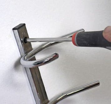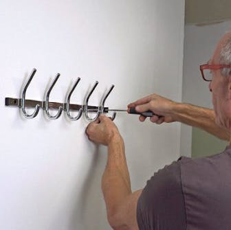 Väännä koukut kiinni käsin ja pidä huoli, että ne ovat suorassa kulmassa seinään nähden. Jos koukut harottavat miten sattuu, kukaan ei kiinnitä huomio-ta siihen, että ne ovat siististi suorassa linjassa.