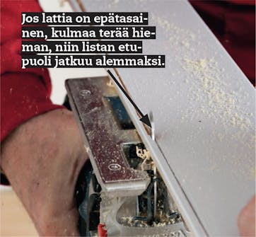 Sahaa irrottamasi listat pistosahalla. Kun sahaat takapuolelta, voit seurata tarkasti etupuolen viivaa eikä etupuoli rispaannu. Kaksi lisämillimetriä takaavat, että sahauslinjasta tulee kauttaaltaan yhtenäinen.