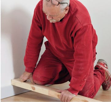 Vedä nyt listaan merkkiviiva koko listan pituudelta samalle etäisyy-delle lattiasta. Pidä kynää täysin suorassa kulmassa seinään nähden ja siirrä kiilaa rauhallisesti eteenpäin. Irrota sitten listat. Viillä ensin listan yläreuna irti seinästä.
