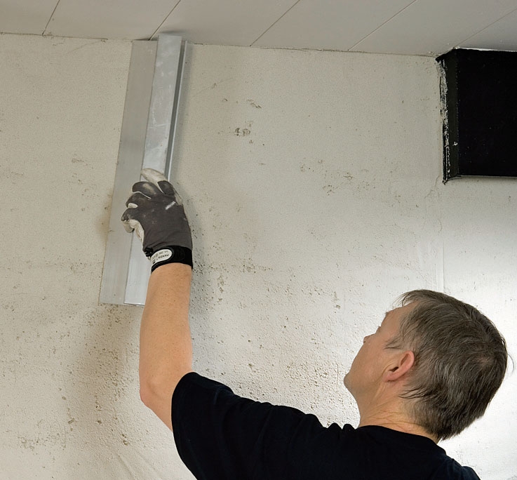 Nopeus on valttia kipsilaastia levitettäessä. Laastin sekoittamisen jälkeen aikaa sen levittämiseen seinään ja tasoittamiseen on vain reilu puoli tuntia.