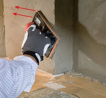 Toisenkin kerroksen paksuus on noin 1,5 mm - juuri sen verran, että kerroksesta tulee peittävä. Laasti levitetään tasaisesti myös sähköpistokkeiden ja muiden esteiden ympärille.