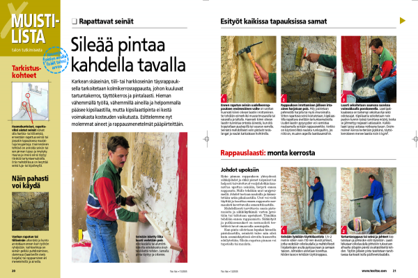 Koko pinnan rappauksen yhteydessä sähköjohdot ja ehkä pienet taipuisat tai helposti taivutettavat vesijohdotkin kan-nattaa upottaa seinään, tietysti ennen rappausta. Niille tehdään urat urajyrsi-mellä. Johdot tuetaan nauloilla ja kiinni-tetään uriin pikalaastilla. Urat voi vielä täyttää ja tasoittaa ennen rappausta nor-maalisti kovettuvalla sementtilaastilla.