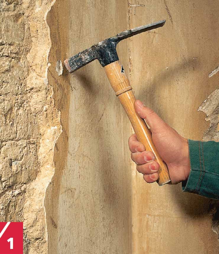 Ennen rapatun seinän uudelleenrap-pauksen ensimmäinen vaihe on vanhan huonosti kiinni olevan laastin irrottaminen. Se tehdään esimerkiksi muurarinvasaralla tai vasaralla ja taltalla. Huonosti kiinni olevan laastin tunnistaa ontosta äänestä, kun sitä koputellaan puukepillä tai vasaran varrella. Seinästä mahdollisesti esiin pistävät teräs-langat ja naulat katkaistaan hohtimilla.
