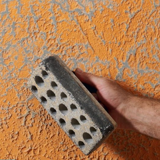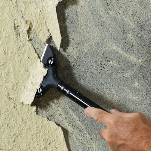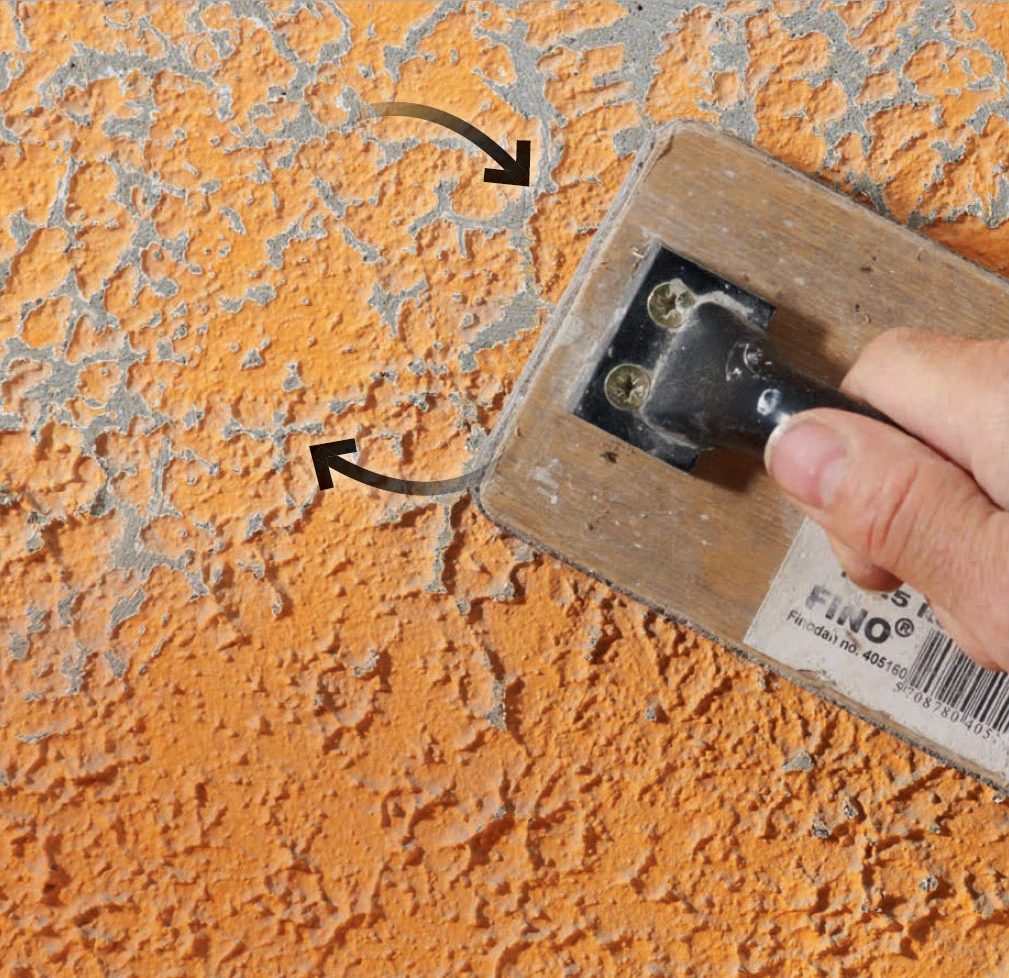 Sisäseinien rappauslaasti on kovaa, ja pinta on täynnä teräviä kohoumia. Niitä ei ole helppo saada pois.
