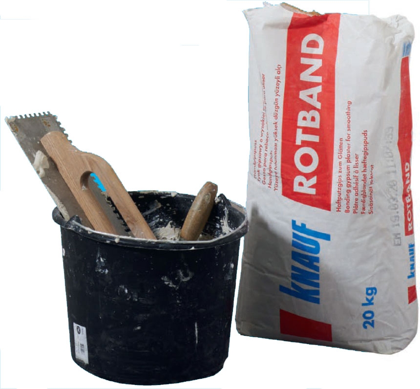 Levitä käsikipsilaasti seinälle. Laastia on todella mukava ja helppo käyttää, ja sitä voi levittää paksuja kerroksia kerrallaan.