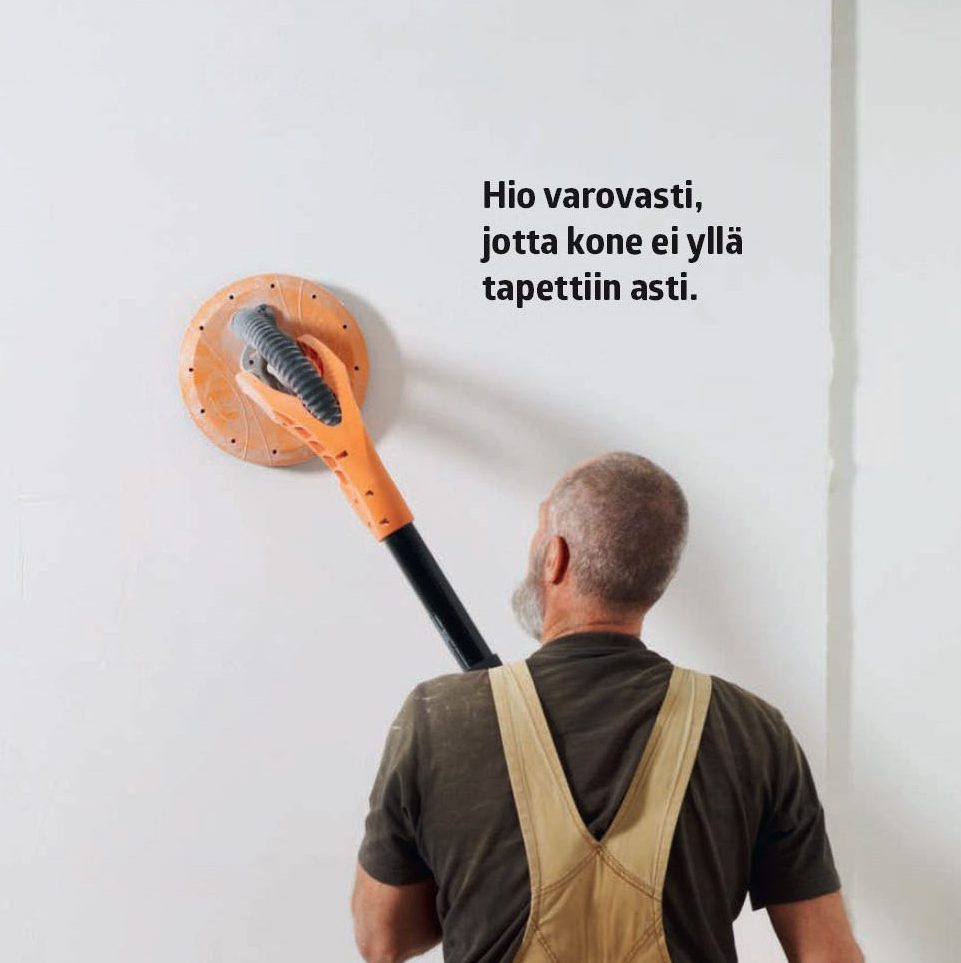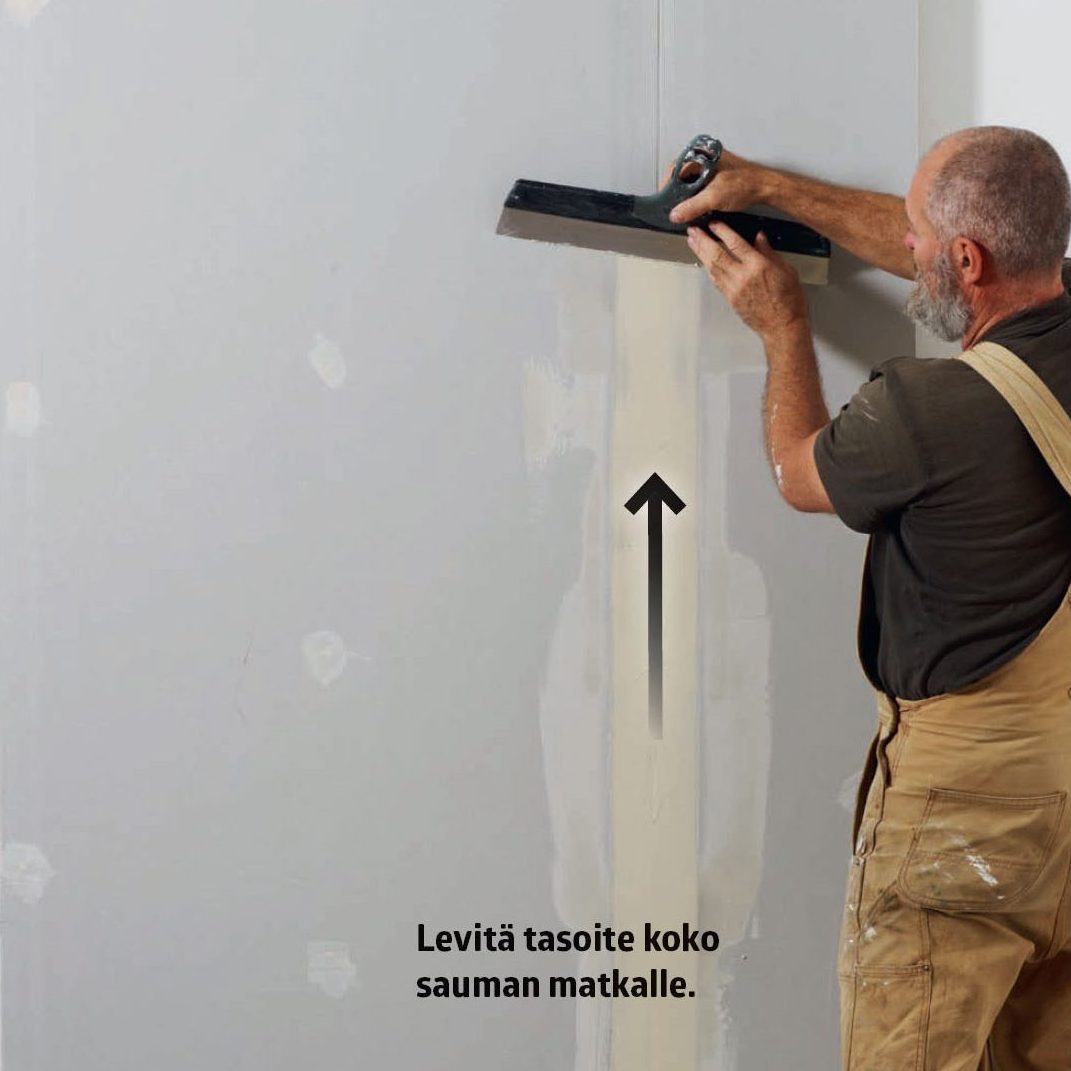 Tasoita laasti. Käytä hierrintä, jossa on ohut vaahtomuovipinta. Tasoita koko seinä kiertoliikkeellä.