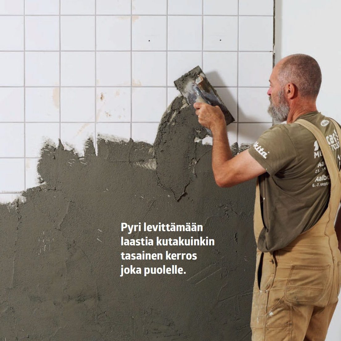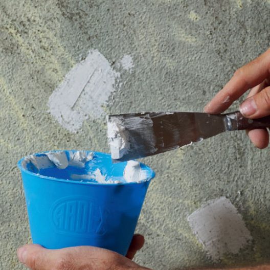 Levitä tasainen kerros laastia teräslastalla. Hiertopinnoite tarttuu tiukasti kaikille kiinteille pinnoille.