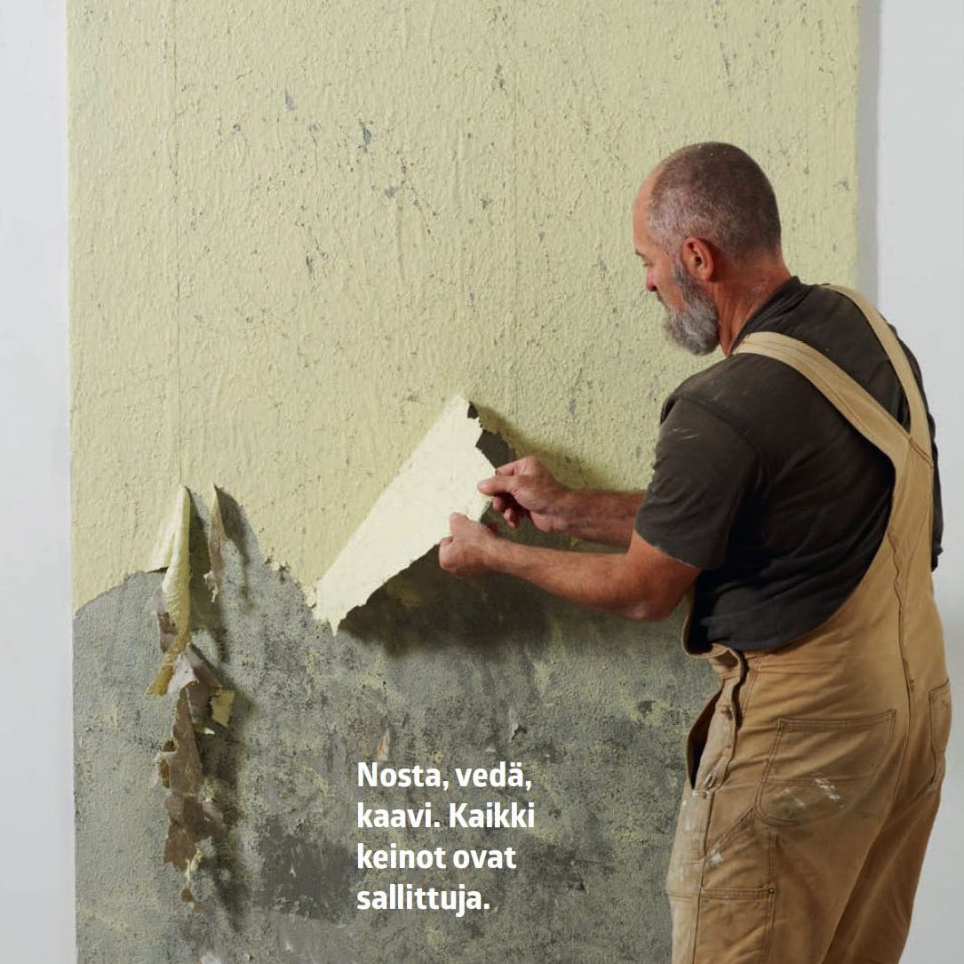 Tapetti irtoaa joistakin kohdista vetämällä. Yritä irrottaa tapetti mahdollisimman isoina paloina.