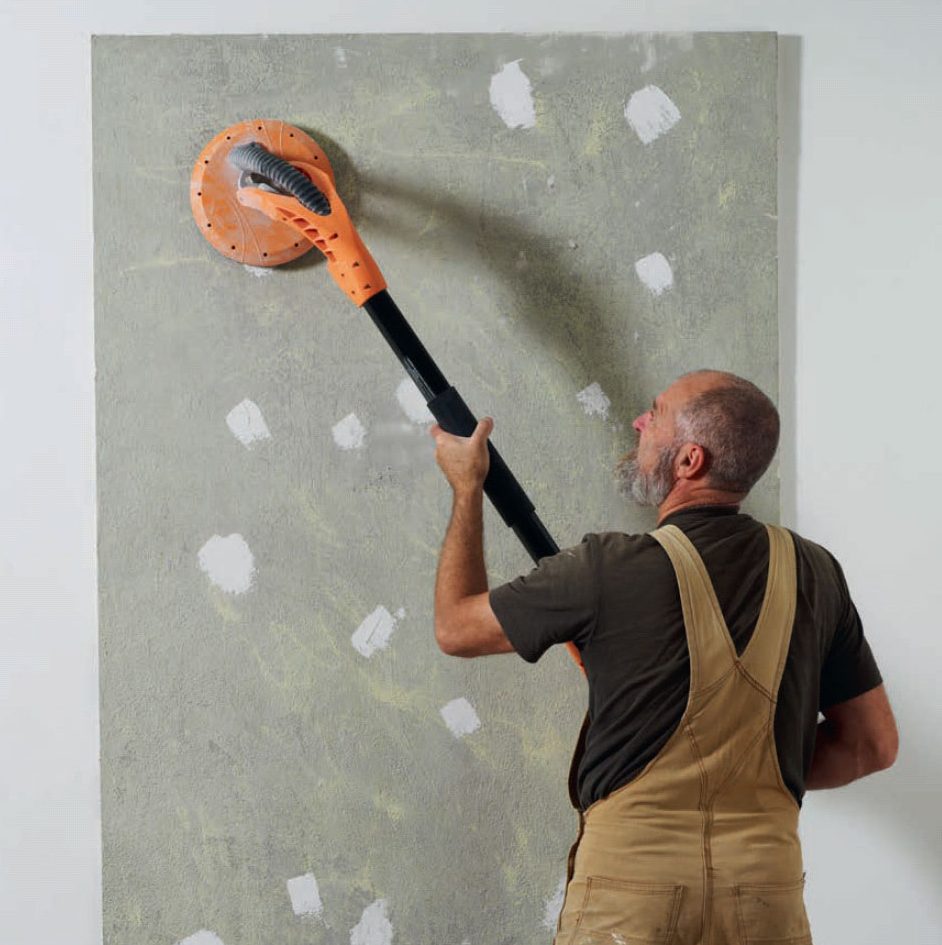 Aloita hiomalla pois pahimmat piikit. Se on työn kovin vaihe, mutta se on pakko tehdä, ennen kuin seinän voi ylitasoittaa.
