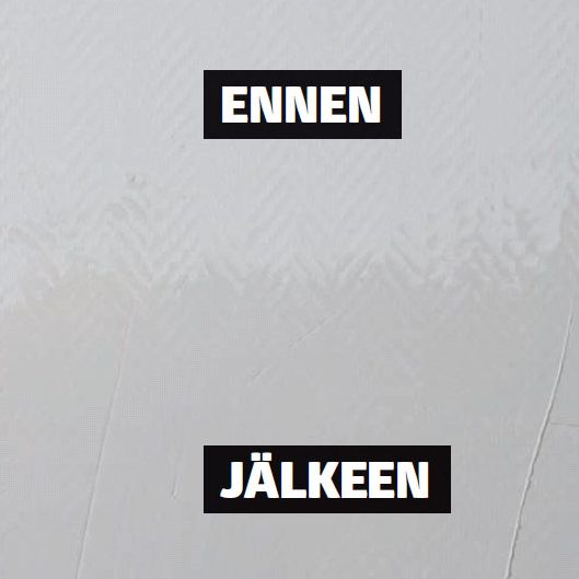 Ensimmäinen kerros peittää kuviota tämän verran. Kuvio näkyy selvästi tasoitteen läpi, joten sitä tarvitaan toinen kerros.