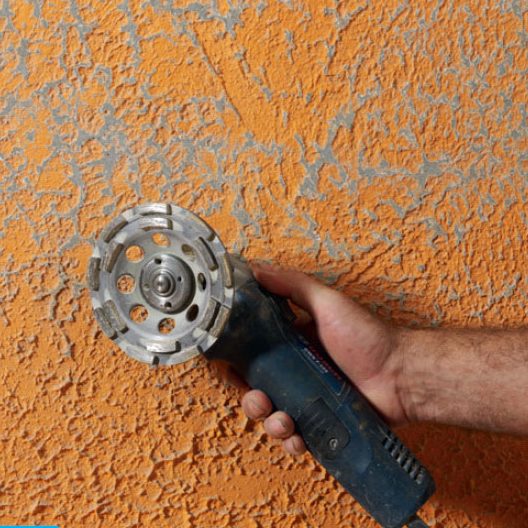 Jos haluat käyttää konetta, suosittelemme kulmahioma konetta ja hiomakuppilaikkaa. Liitä koneeseen pölynimuri ja muista suojalasit ja maski!