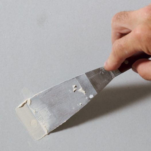 Peitä ruuvinreiät tasoitteella. Upota ruuvinkannat 0,5-1 milliä pinnan alle, mutta varo, ettei kanta mene pintapahvin läpi.