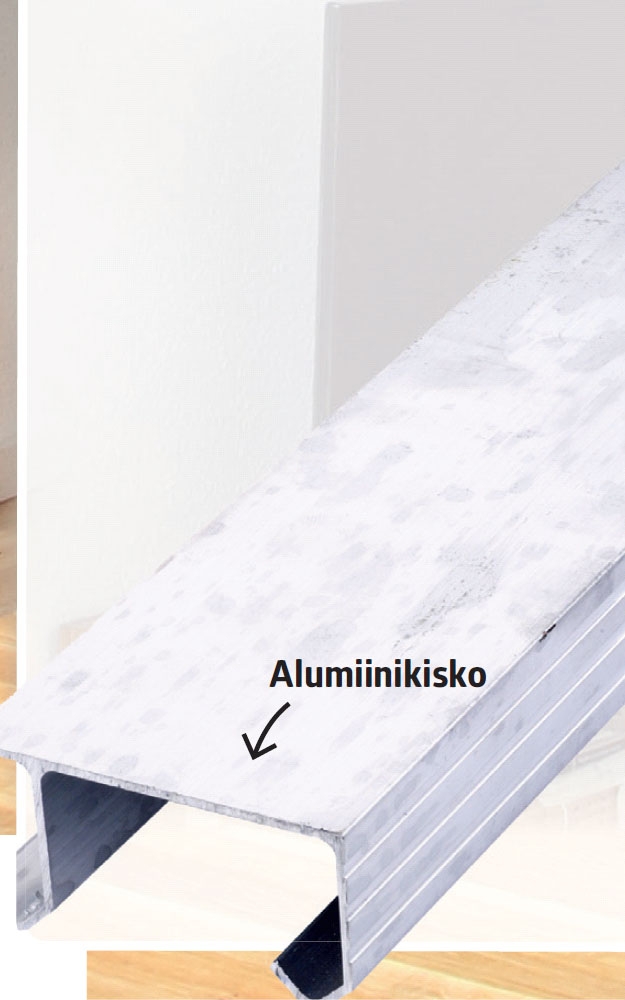 Kevyen, kaksiosaisen väliseinän rakentamiseen tarvitaan kaksiurainen alumiinikisko.