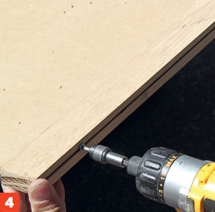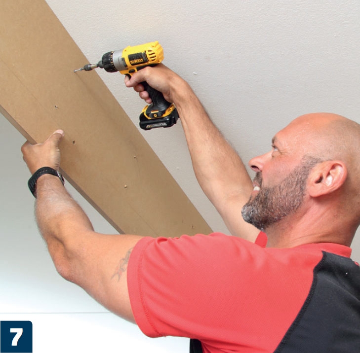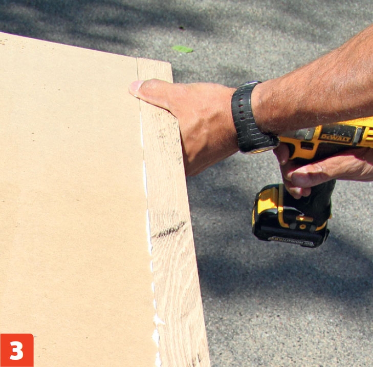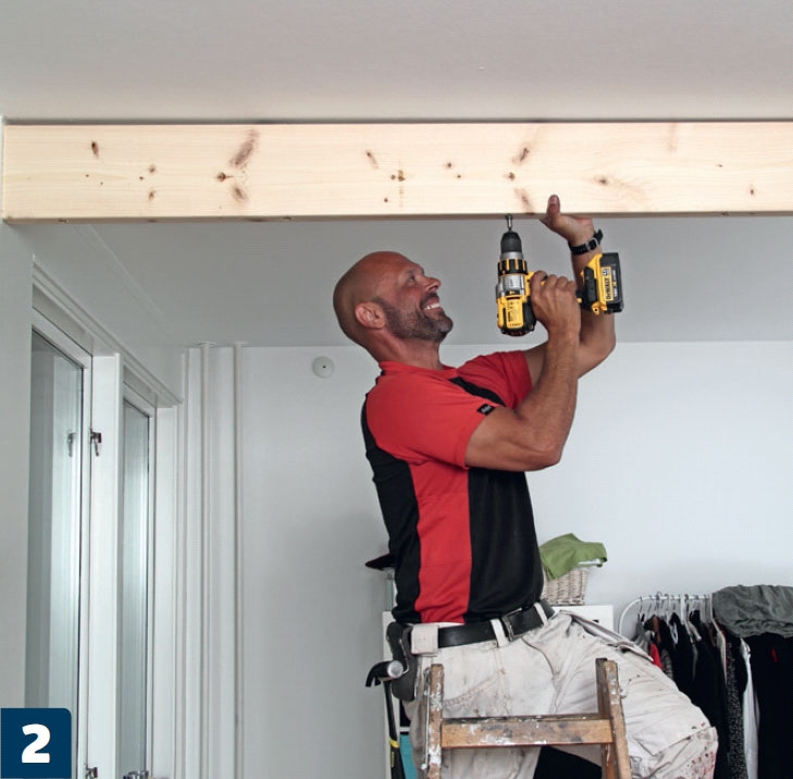 Ruuvaa palkin kylkeen 16-milliä paksusta mdf-levystä tehty peitelevy. Upota ruuvinkannat pinnan alle, jotta levyn pinta on myöhemmin helppo käsitellä tasaiseksi.