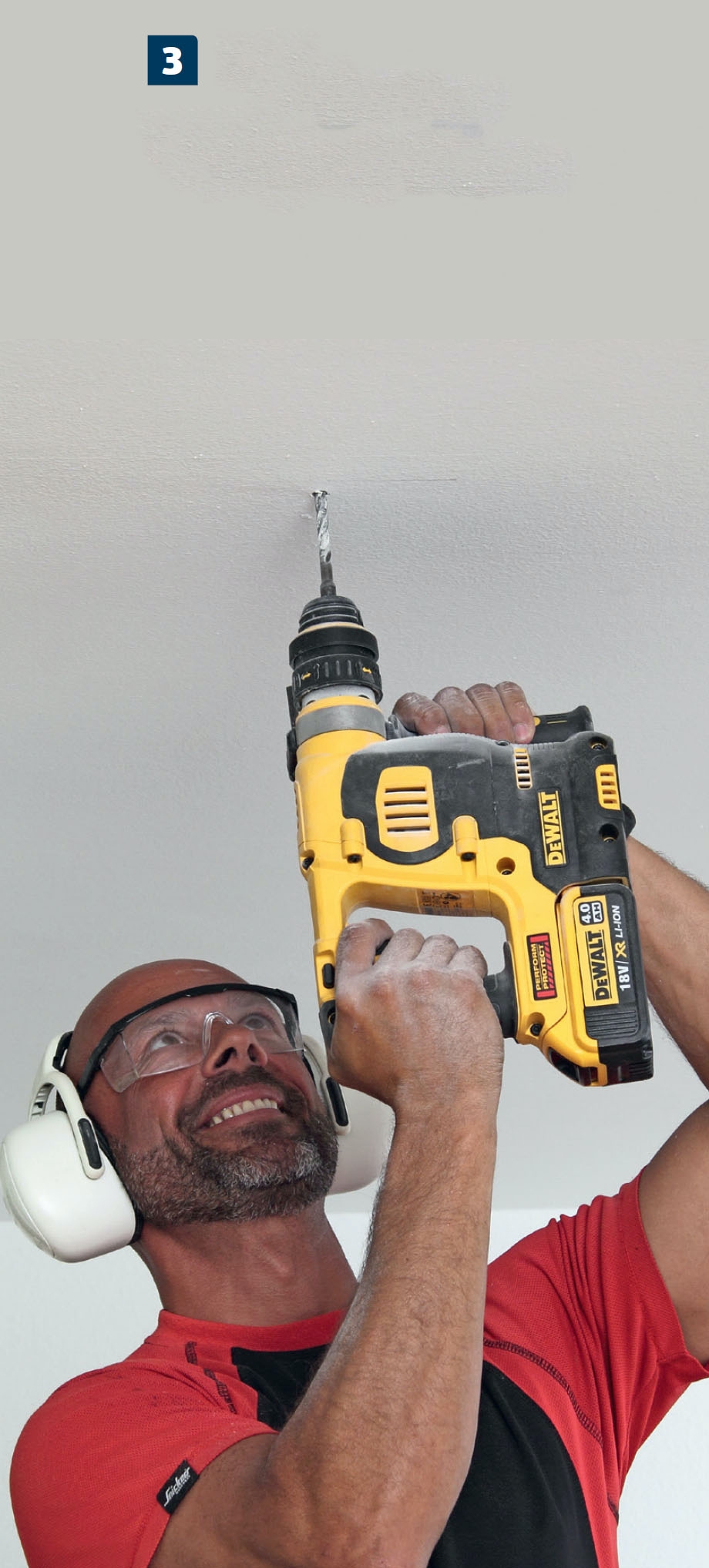 Tämä palkki kiinnitetään kovaan betonikattoon. Reiät tehdään poravasaralla ja 8 millin kiviterällä.
