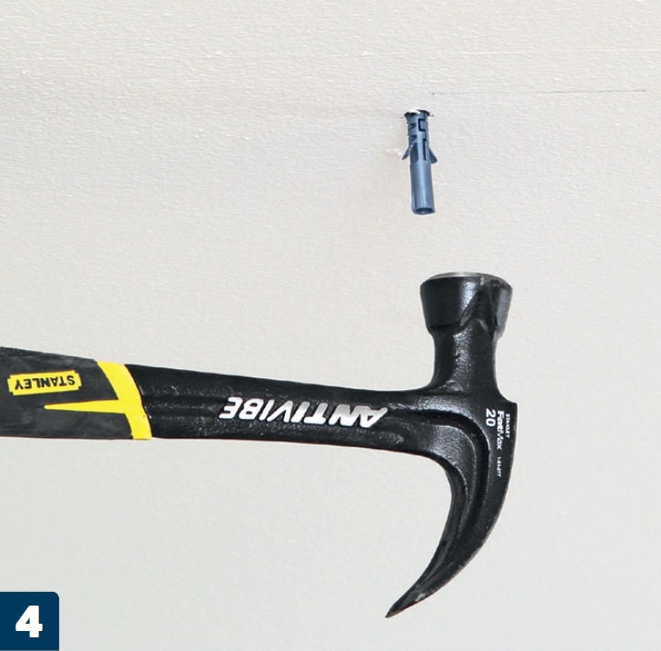 Kun olet porannut reiät, upota niihin vasaralla 8 millin nylontulpat. Muista tarkistaa, että tulpat sopivat katon materiaaliin.